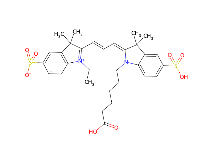 Sulfo-Cy3 羧酸是一种花青染料,各种花青染料已被用于标记生物分子用于荧光成像和其他基于荧光的生化分析。 它们广泛用于标记肽,蛋白质和寡核苷酸等。Cy3染料是常见的红色荧光团之一。 这些多功能荧光团可以耐受3-10的pH范围,用于生物相关pH值下的各种应用。 这些染料还具有耐受DMSO的能力,并具有光稳定性,可以在不损失性能的情况下从储存转移到分析。 水溶性测定缓冲液中对有机溶剂的需求。 Sulfo-Cyanine 3是一种替代染料,主要用于替代由GE Healthcare开发的Cy3,用于标记肽和寡核苷酸。